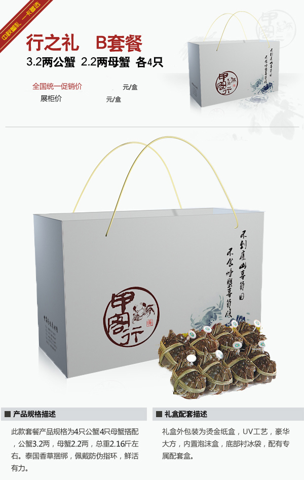 行之礼-B套餐 (8只装) :3.2两公蟹 2.2两母蟹